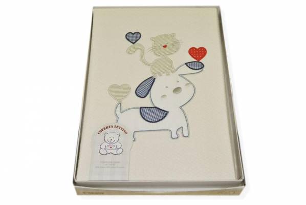 COPERTA LETTINO IN JERSEY DOPPIATO PURO COTONE DISEGNO CANE E GATTO BEIGE