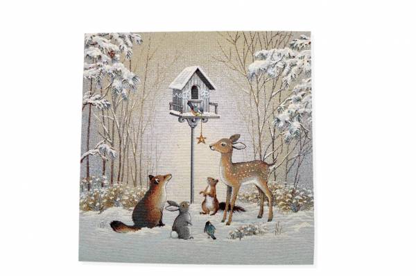 Tessuto con tenera illustrazione di cerbiatto e altri animali in Gobelin cm 47x47. Articolo utilizzato per realizzare graziosi copricuscini, sottopiatti, tovagliette e lavori di cucito creativo vario.