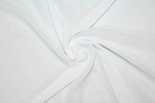Tessuto georgette di pregiata pura seta, proposto in una delicata tonalità di bianco ghiaccio. Questa tipologia di tessuto si distingue dalle altre stoffe per la sua superficie mano crepe, tipica della sua tipologia.