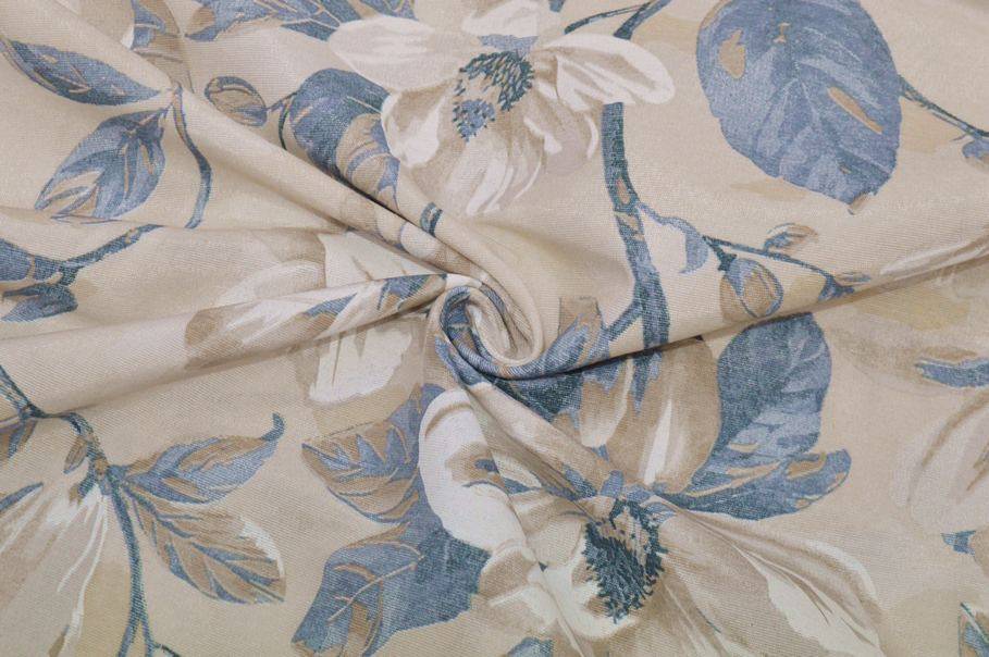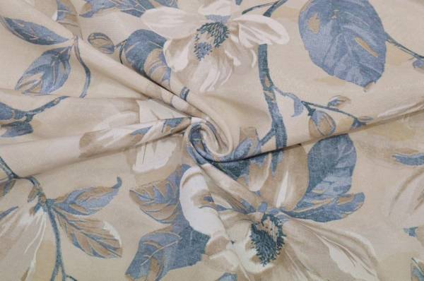 Vendita online cotoni tessuto arredo fantasia magnolia azzurra fondo beige - Tessuti & Stoffe