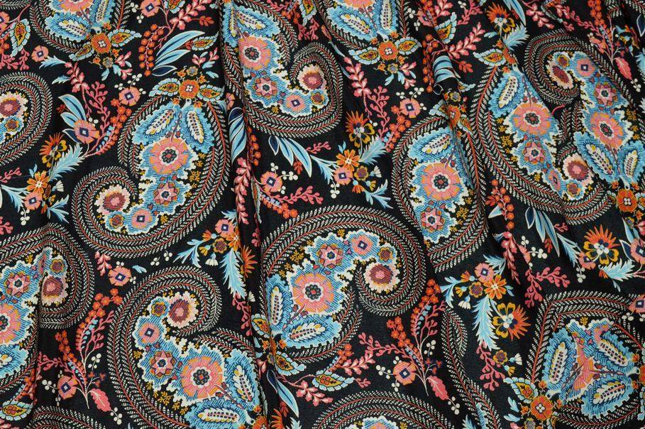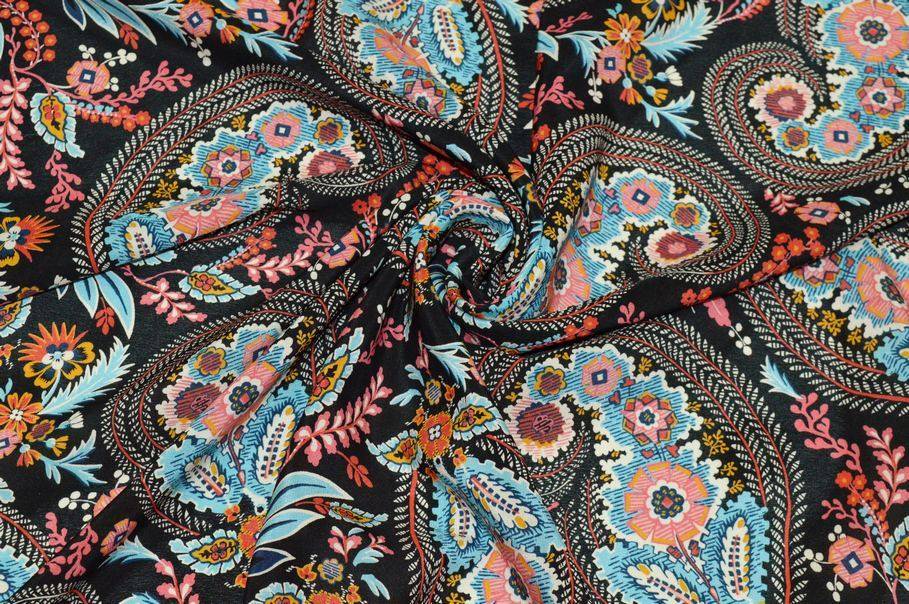 TESSUTO CREPE DE CHINE DISEGNO CASHMERE FONDO NERO