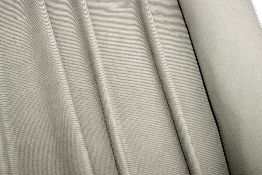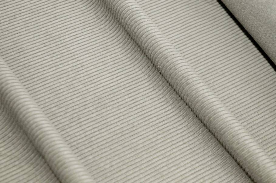 Il tessuto di velluto si distingue per la superficie a coste, formata da righe di tessuto in rilievo. In questo caso si contano 500 righe. Larghezza costa: 3 mm circa.