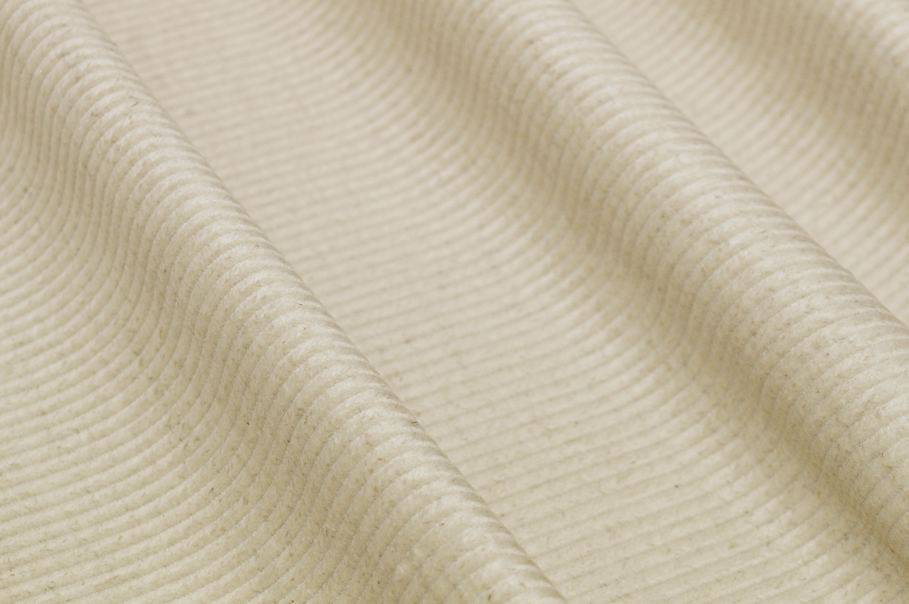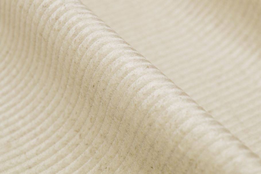 Il tessuto di velluto si distingue per la superficie a coste, formata da righe di tessuto in rilievo. In questo caso si contano 480 righe. Larghezza costa: 3 mm circa.