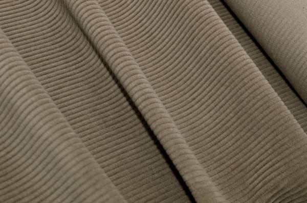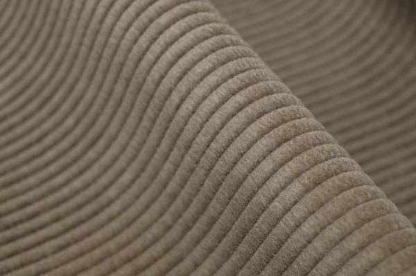 Il tessuto di velluto si distingue per la superficie a coste, formata da righe di tessuto in rilievo. In questo caso si contano 450 righe. Larghezza costa: 3 mm circa.