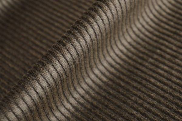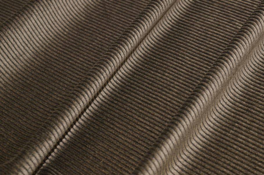 Il tessuto di velluto si distingue per la superficie a coste, formata da righe di tessuto in rilievo. In questo caso si contano 450 righe. Larghezza costa: 3 mm circa.