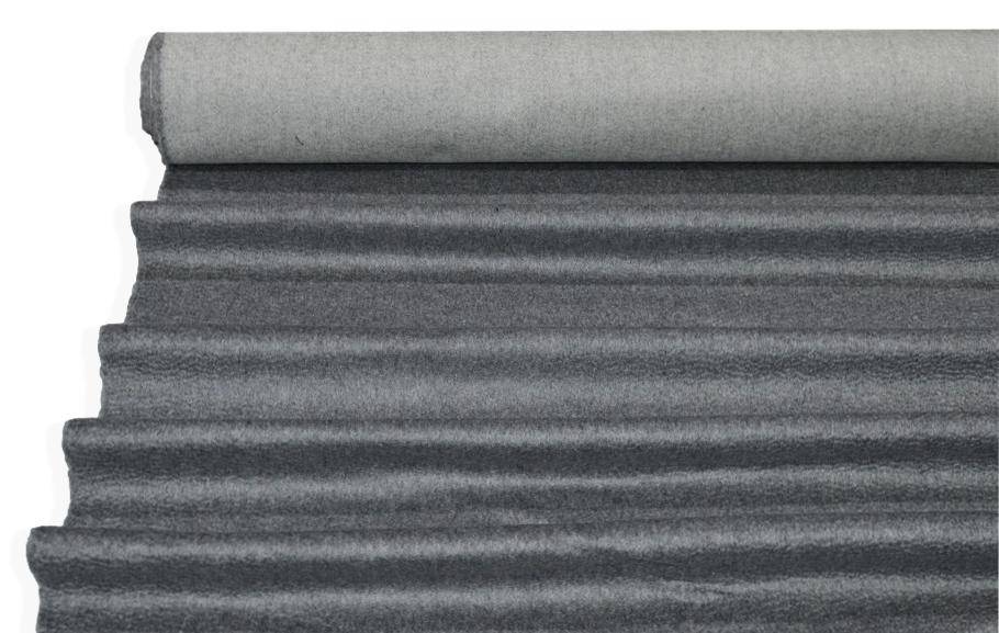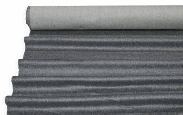 Tessuto di puro cashmere zibellinato grigio medio di mano estremamente morbida e calda. La superficie è soffice e lucente, tipica di questo materiale. Presenta inoltre una bellissima zibellinatura a campo pieno che aumenta il pregio e la bellezza estetica del prodotto.