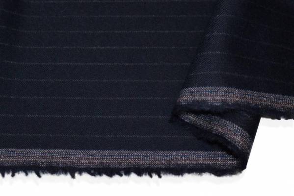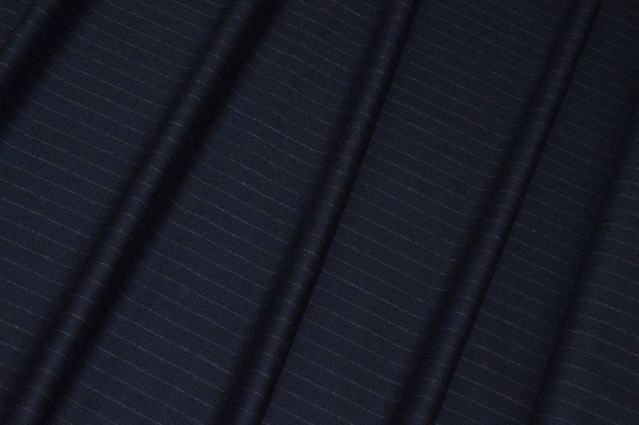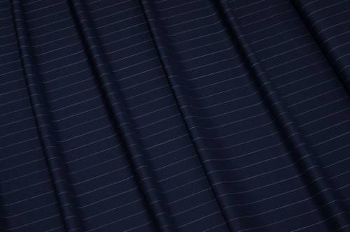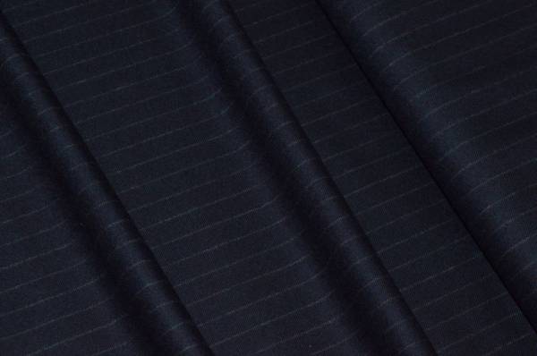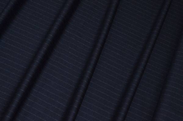 La colorazione scelta è un classico blu arricchito dalla sottile gessatura di 1,2 cm. E' una stoffa motlo versatile e sempre elegante, perfetta sia per capi dal taglio classico che per proposte più moderne.