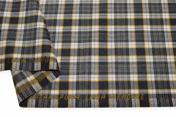 TESSUTO TARTAN PURA LANA GRIGIO RIGA GIALLA