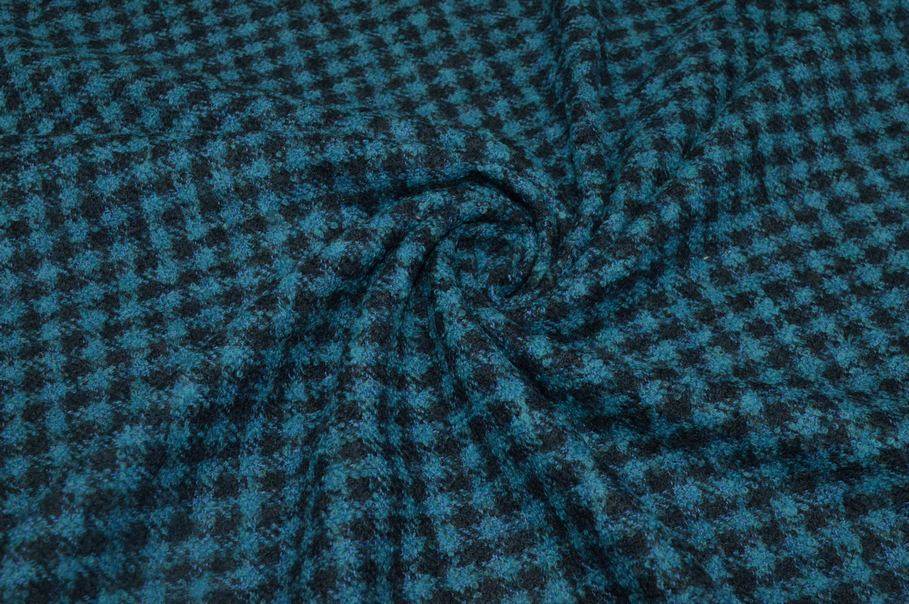 Vendita online tessuti abbigliamento tessuto lana tessuto pura lana effetto boucle scacco azzurro - Tessuti & Stoffe