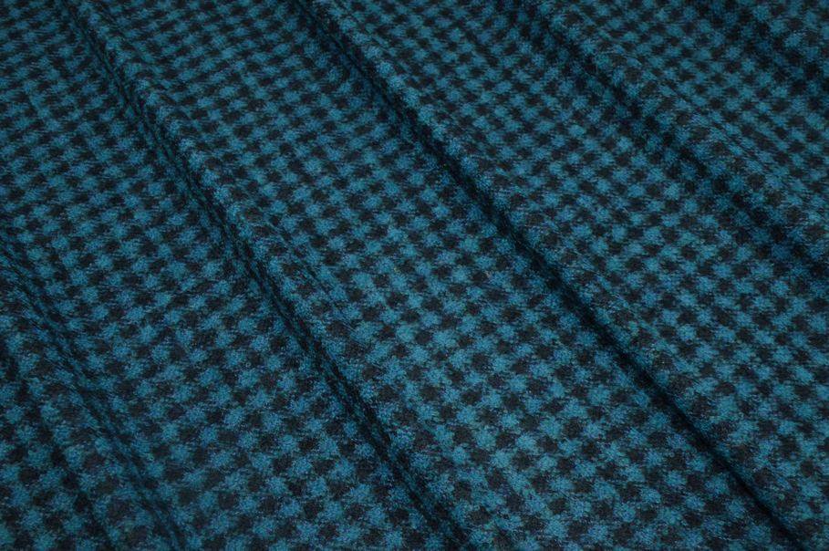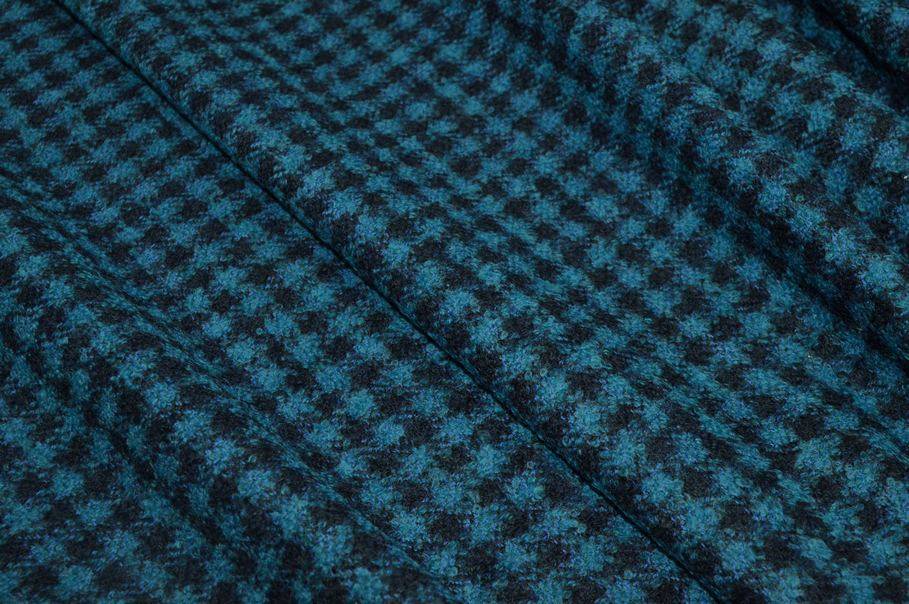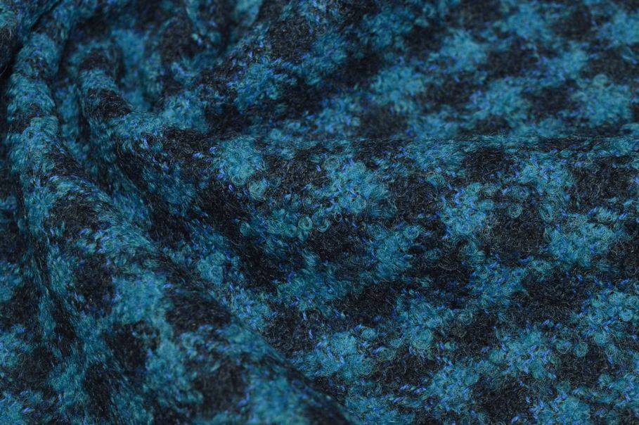 TESSUTO PURA LANA EFFETTO BOUCLE SCACCO AZZURRO