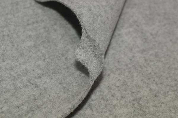 Tessuto cappotto double in pura lana colore grigio chiaro melange, dalla mano calda, avvolgente e morbida. La struttura double nasce dall’unione di due strati di tessuto, facilmente divisibili come mostrato nella foto dimostrativa.