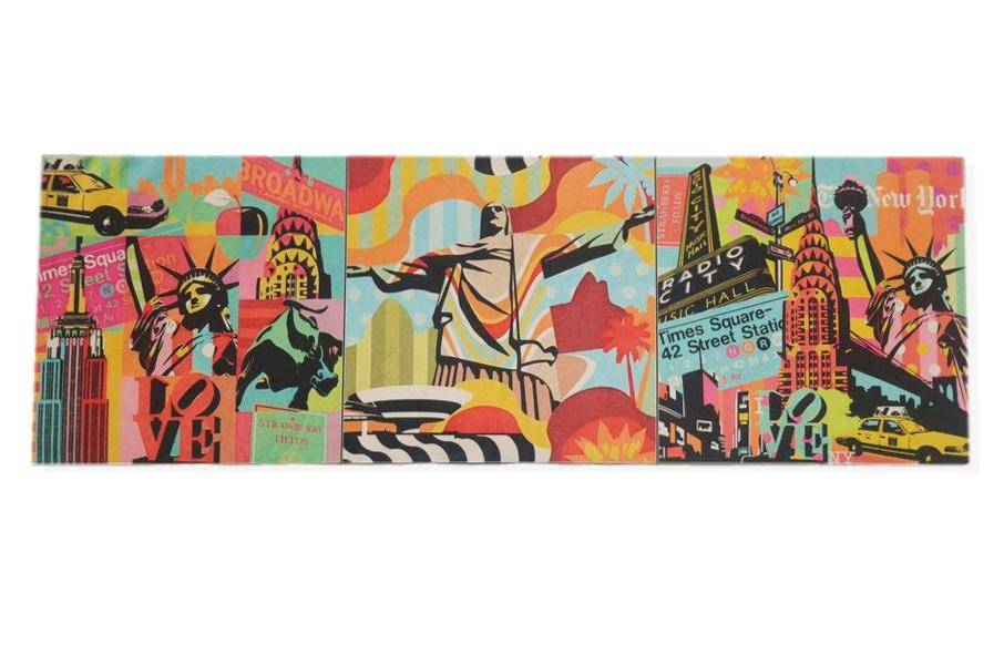 SET 3 PANNELLI DISEGNO CITY 2 CM 47x47