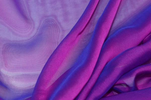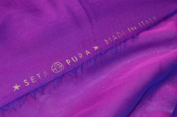 Tessuto in pura seta leggero e fluido, caratterizzato da una mano morbida e delicata al tatto. La sua superficie presenta un elegante effetto cangiante e luminoso, che cambia leggermente riflesso a seconda della luce, donando ai capi un aspetto raffinato e dinamico.