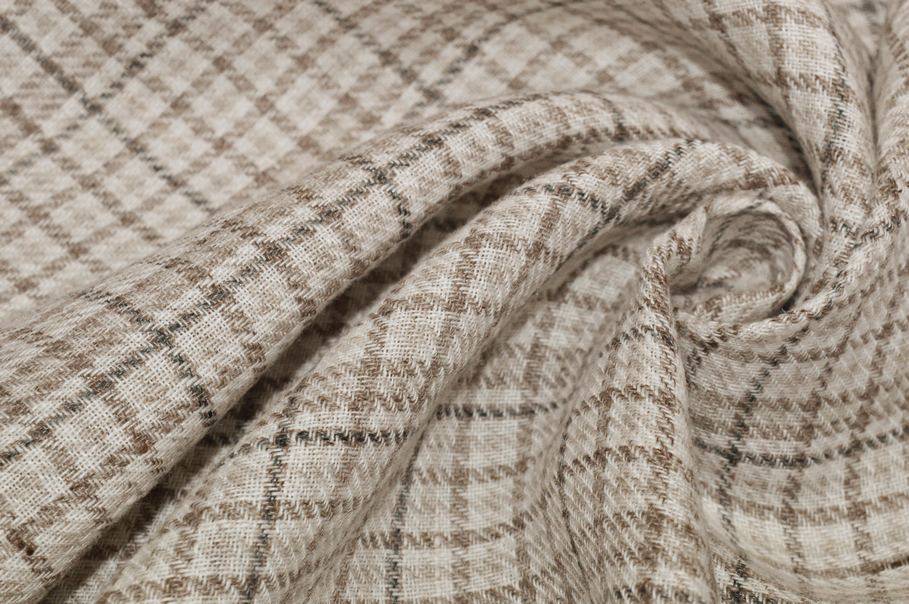 Vendita online tessuti abbigliamento lino tessuto puro lino scacchetto beige - Tessuti & Stoffe