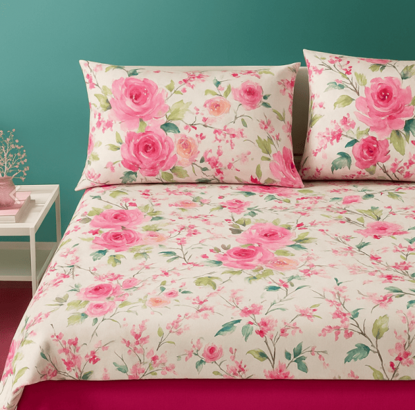 COMPLETO LENZUOLA MATRIMONIALE MIRABELLO MODELLO RAMI DI ROSE VAR. ROSA R09