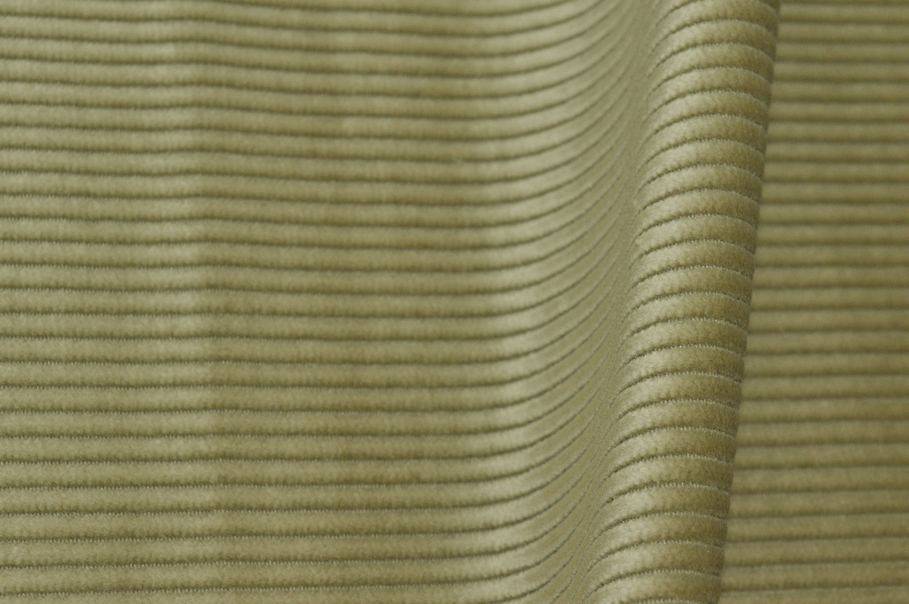 Il tessuto di velluto si riconosce per la sua superficie a coste, caratterizzata da file in rilievo: in questo caso se ne contano circa 450, con una larghezza di circa 3 mm ciascuna. Un ulteriore elemento distintivo è l’elegante luminosità della superficie, accompagnata da una mano estremamente morbida, tipica delle stoffe vellutate.
