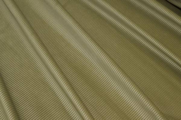 Il tessuto di velluto si riconosce per la sua superficie a coste, caratterizzata da file in rilievo: in questo caso se ne contano circa 450, con una larghezza di circa 3 mm ciascuna. Un ulteriore elemento distintivo è l’elegante luminosità della superficie, accompagnata da una mano estremamente morbida, tipica delle stoffe vellutate.