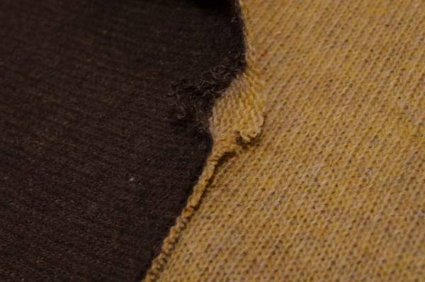 Vendita online tessuti abbigliamento tessuto lana tessuto jersey misto lana cotone senape marrone - Tessuti & Stoffe