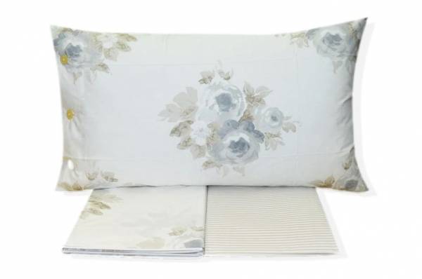 COMPLETO LENZUOLA SINGOLO BELLORA WHITE LINEN MODELLO FIORE V38 GRIGIO