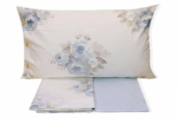 COMPLETO LENZUOLA SINGOLO BELLORA WHITE LINEN MODELLO FIORE V42 AZZURRO