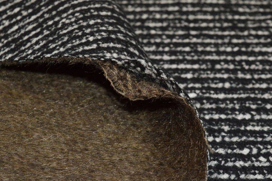 Questo articolo presenta due facce distintive: da un lato una particolare fantasia a diagonale nei toni del bianco e nero, dall’altro una particolarissima gradazione verde marcio/sottobosco. Una combinazione che apre a infinite possibilità creative, perfetta per confezionare cappotti e soprabiti con dettagli a contrasto o giochi di colore.