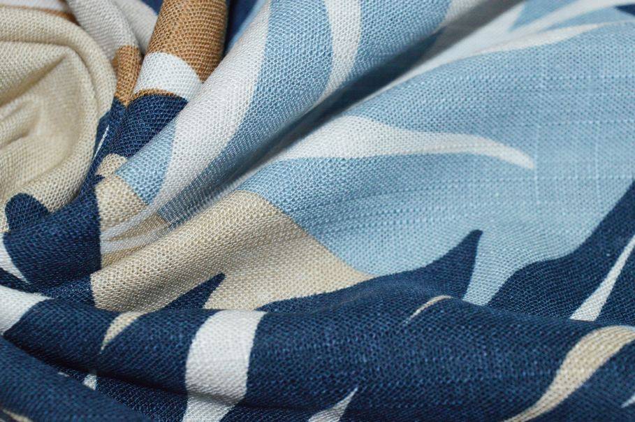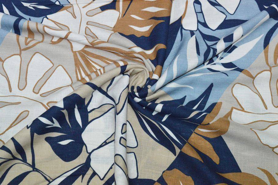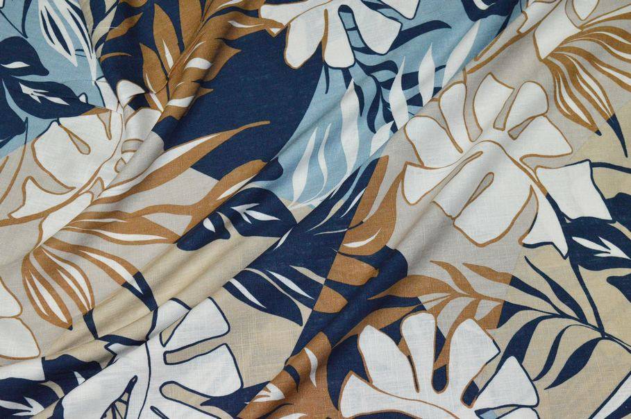 TESSUTO LINO E COTONE FANTASIA TROPICAL BLU