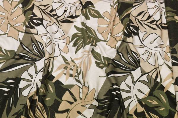 In questa variante la fantasia riprente il tema tropicale unendo beige e diverse tonalità di verde.