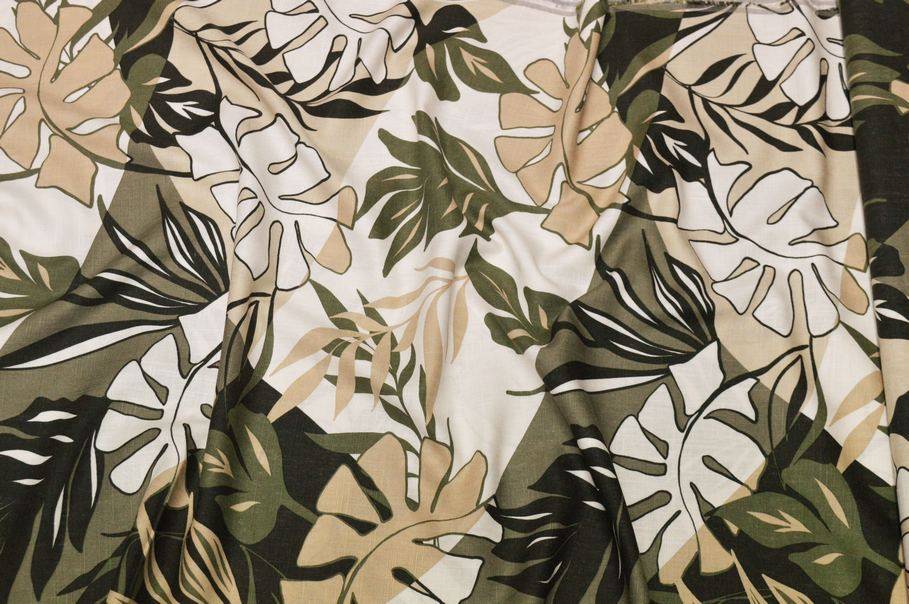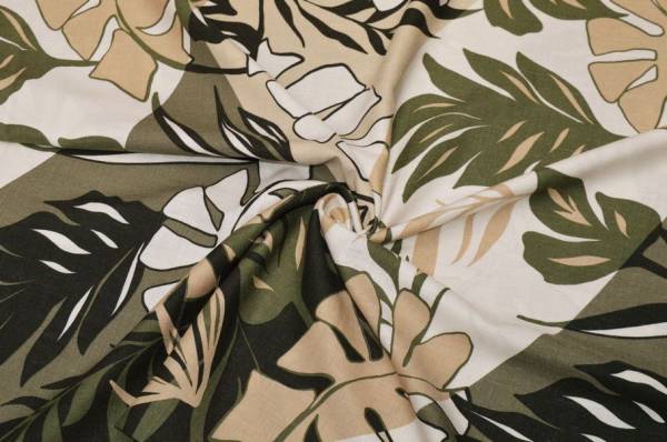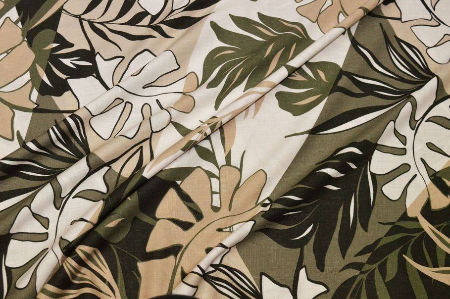 TESSUTO LINO E COTONE FANTASIA TROPICAL VERDE