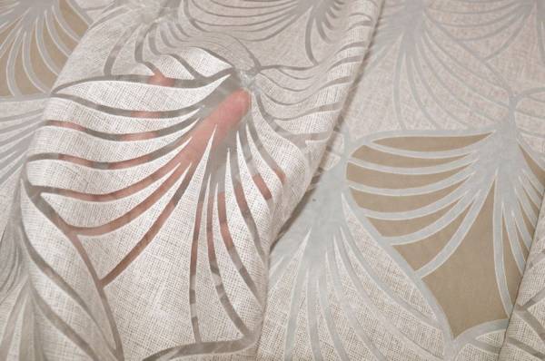Il fondo presenta una bellissima fantasia raffigurante foglie stilizzate che mostrano dettagli trasparenti e coprenti per un effetto vedo non vedo, tipico delle stoffe in devoreh. Questa lavorazione consente alla luce naturale di filtrare facilmente illuminando gli spazi con scarsa luminosità, mantenendo un'adeguata privacy nell'ambiente che si vuole arredare.