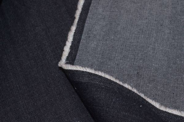 Tessuto jeans in puro cotone non trattato, caratterizzato da una mano compatta e robusta, con grammatura media che lo rende particolarmente adatto alla stagione estiva e alla mezza stagione.