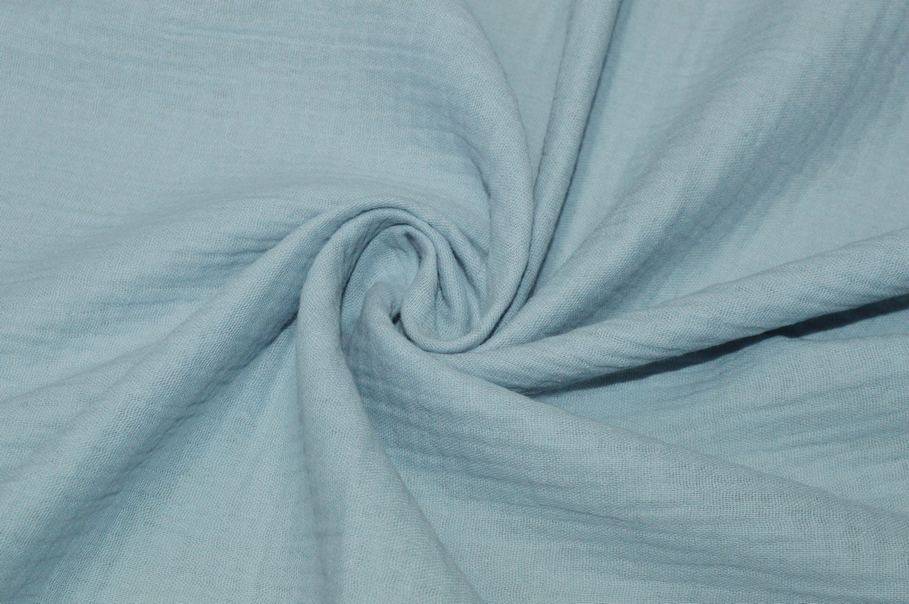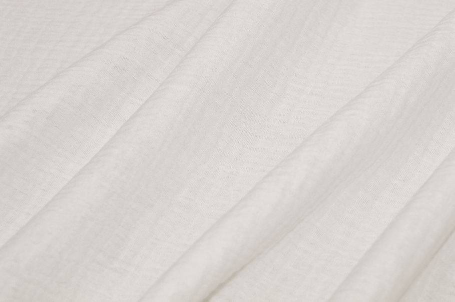 Tessuto in doppia garza realizzato interamente in puro cotone, composto da due strati di garza uniti tra loro mantenendo ugualmente traspirabilità e freschezza. La superficie presenta un delicato effetto leggermente arricciato, tipo goffrato.