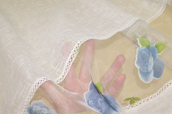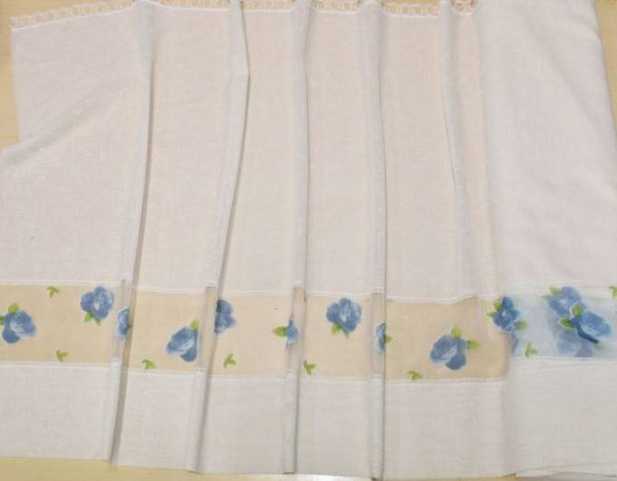Vendita online tessuti per tende tendine metraggio vetro tendino con inserto organza fiore blu - Tessuti & Stoffe