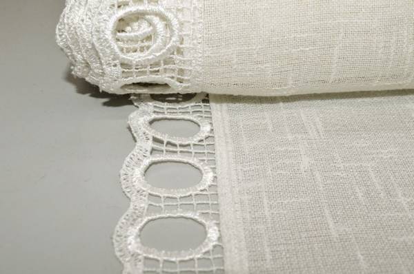 Tendino venduto a metraggio, con orli inferiori e superiori già fatti. Da rifinire laterlamente dove viene eseguito il taglio. La parte superiore presenta fori appositi per il bastone della tenda, che consentono un montaggio semplice.
