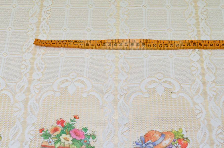 Tendino ricamato con fantasia vaso di fiori, venduto a metraggio con taglio laterale. La parte superiore e inferiore sono già rifinite, la parte superiore è dotata di fori appositi per inserire il bastone, mentre quella inferiore presenta una elegante smerlatura che valorizza il disegno ricamato.
