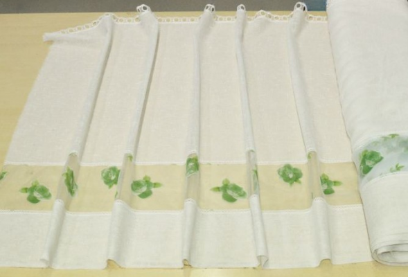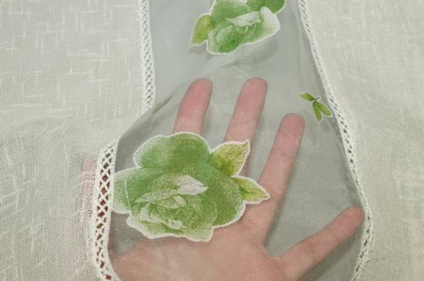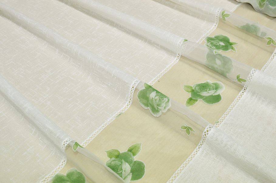 Vendita online tessuti per tende tendine metraggio vetro tendino con inserto in organza fiore verde - Tessuti & Stoffe