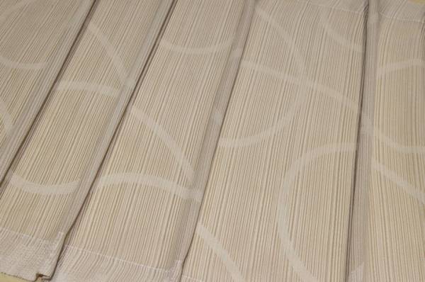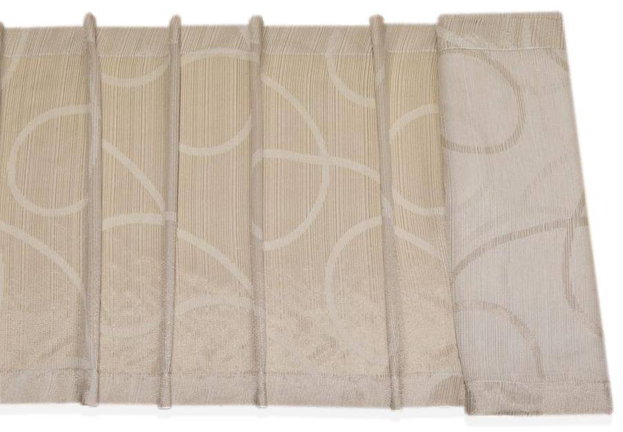 Tendino in tessuto con fantasia geometrica beige, venduto a metraggio. Il tessuto è rifinito sui lati, pertanto il taglio viene effettuato nella parte superiore e inferiore, per una confezione ordinata e pronta all’uso.