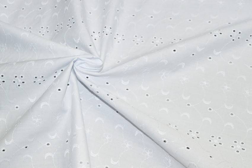 Tessuto pizzo San Gallo idoneo per abbigliamento, camiceria e arredo culle, con smerlo su le due cimose
