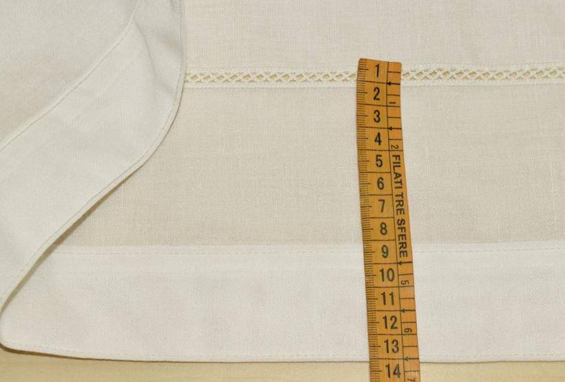 Tendino in misto lino con ricamo floreale, venduto a metraggio. Il tessuto è rifinito sui lati, quindi il taglio va effettuato nella parte superiore e inferiore, per una confezione ordinata e pronta da montare.