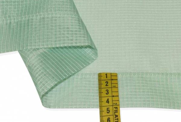 Tendino in organza leggera e luminosa, con fantasia a quadretti verde, perfetto per arredare gli ambienti con freschezza ed eleganza.