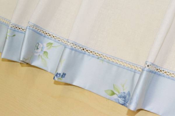 Vendita online tessuti per tende scampoli scampolo tendino bianco con bordo floreale azzurro - Tessuti & Stoffe