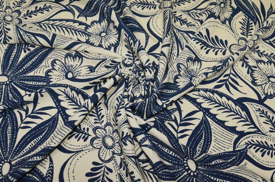 TESSUTO VISCOSA FANTASIA FLOREALE PANNA E AZZURRO