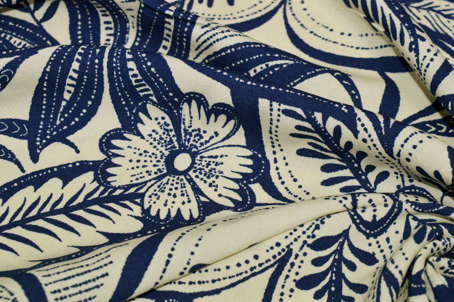 Vendita online tessuti abbigliamento viscosa tessuto viscosa fantasia floreale panna e azzurro - Tessuti & Stoffe