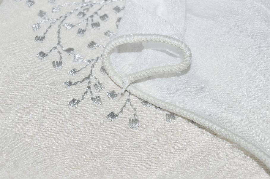 La base viene arricchita da un minuzioso e fine ricamo grigio che riproduce l’Albero della Vita stilizzato, elegante e decorativo.