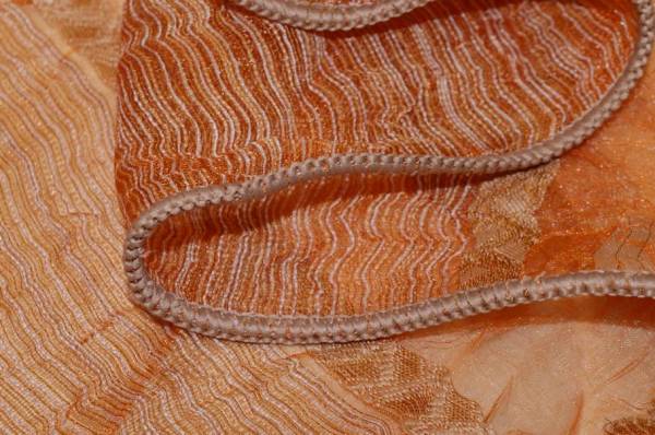 Splendido tessuto in organza idoneo per la realizzazione di tendaggi dalla mano cadente e leggera unita ad un aspetto semitrasparente e filtrante alla luce. Il fondo alterna fasce di differente coprenza permettendo alla luce di filtrare, ma mantenendo un buon livello di privacy nell'ambiente Il fondo presenta una lussuosa ed elegante colorazione arancio impreziosita dai ricami floreali in fill coupe i quali donano finezza e luce alla stoffa. Superficie con effetto stropicciato. Ideale per creare tutte le tipologie di tende arricciate.