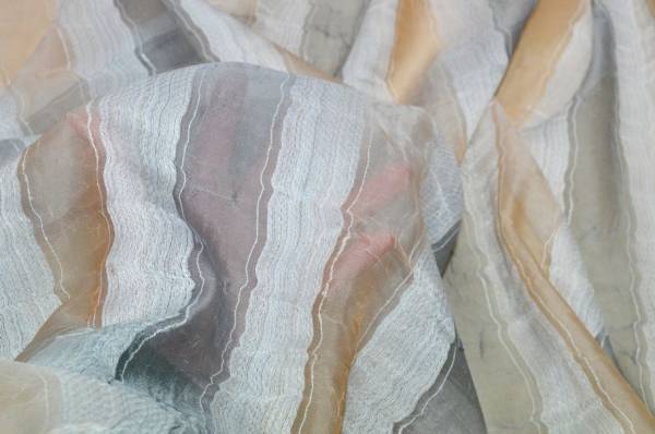Bellissimo velo per tendaggi con effetto stropicciato, dalla mano leggera e cadente, con aspetto semitrasparente che filtra delicatamente la luce e illumina l’ambiente. Nella variante rigata grigia, il fondo sobrio è arricchito da righe larghe 4 cm che creano un elegante gioco visivo, raffinato e moderno.