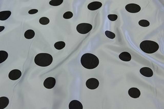 TESSUTO RASO STAMPATO POIS BIACO NERO 360