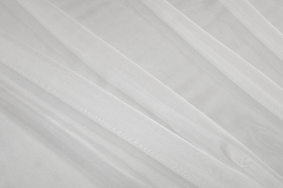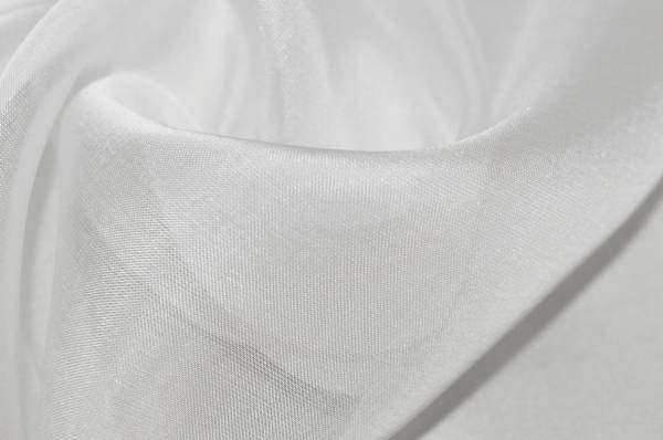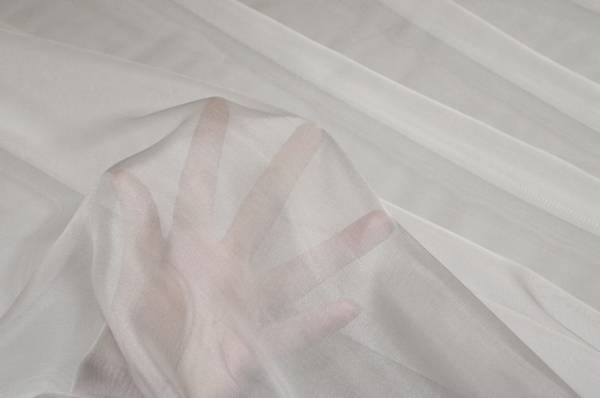 Ottimo tessuto voile in misto seta color seta (bianco), caratterizzato da una mano leggera e semicoprente, liscia, morbida e piacevolmente cadente. È realizzato dall’unione di filati di viscosa e seta, che donano al tessuto freschezza, luminosità e un’ottima traspirabilità.