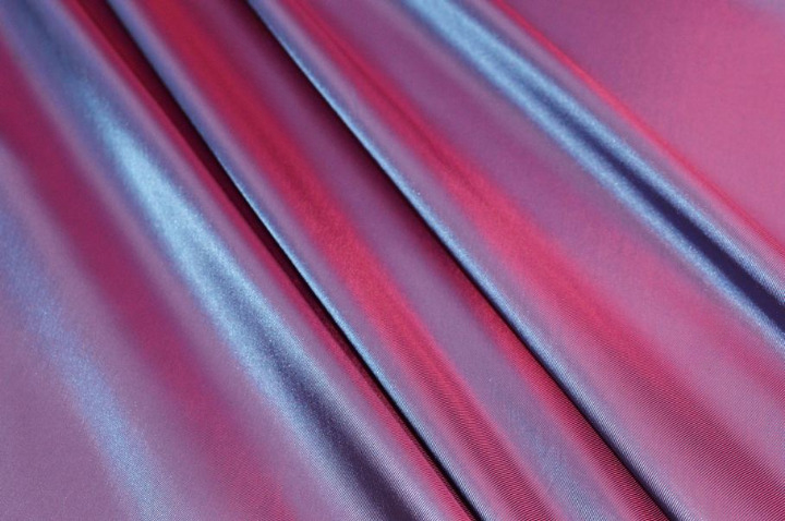 Nella variante fucsia cangiante blu, il tessuto offre un aspetto dinamico e luminoso, rendendolo ideale per aggiungere dettagli eleganti e sofisticati agli interni dei capi.