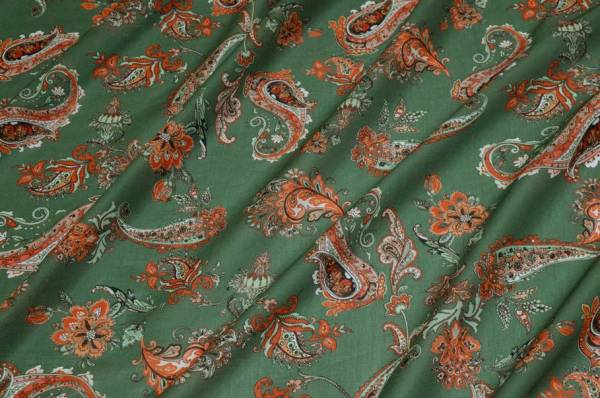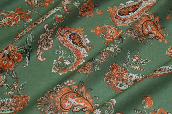 Vendita online cotoni fantasie varie tessuto batista puro cotone disegno cashmere arancio e verde - Tessuti & Stoffe