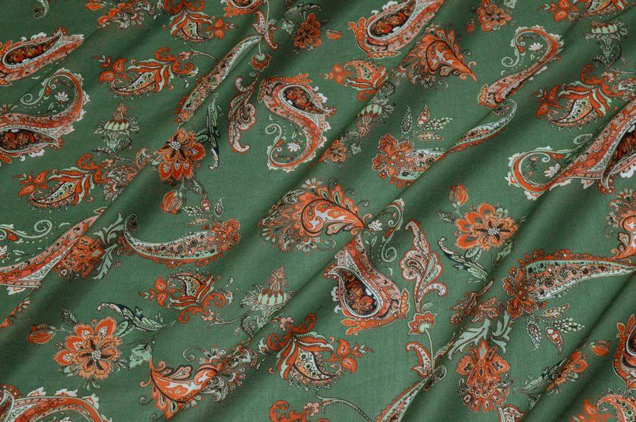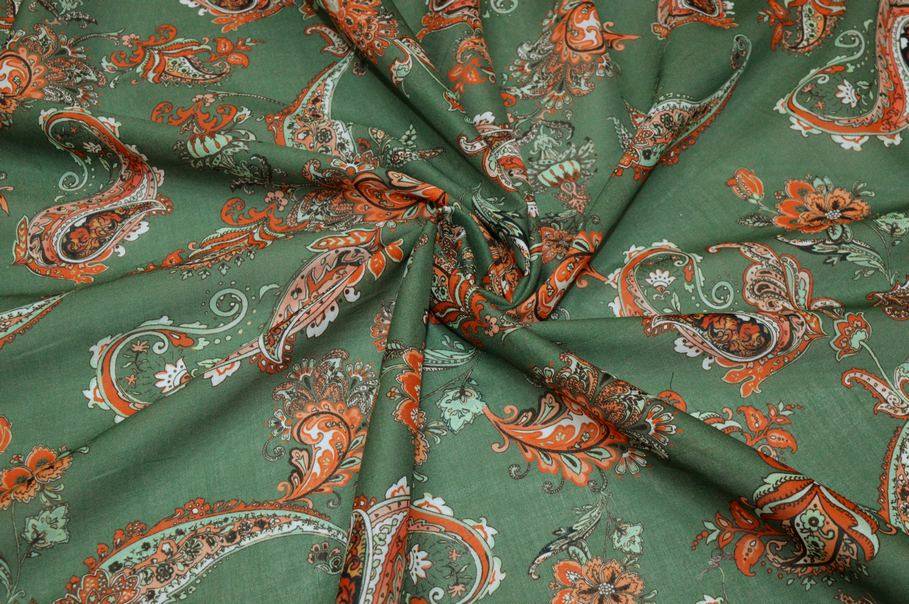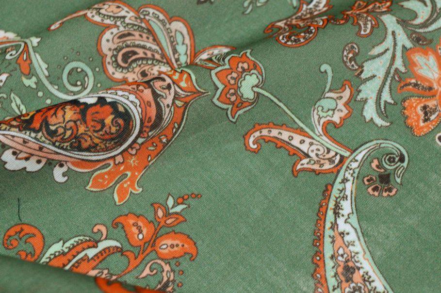 TESSUTO BATISTA PURO COTONE DISEGNO CASHMERE ARANCIO E VERDE